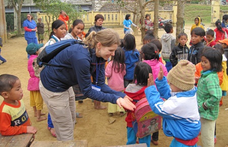 Đại diện của Quỹ Phục vụ Cộng đồng toàn cầu trong chuyến thăm trường học dành cho con em đồng bào dân tộc thiểu số ở xã A-Pao, huyện Đắkrông, Quảng Trị