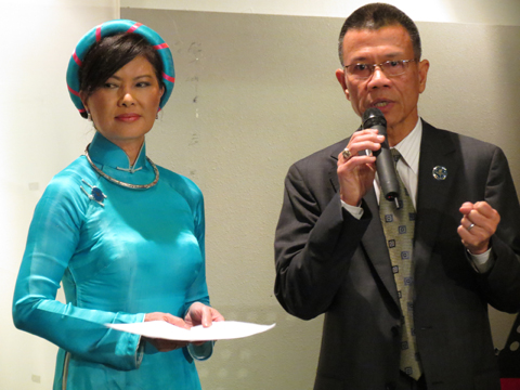 Sáng ngày 5/1 Hội tổ chức buổi sinh hoạt đầu tiên của năm nay tại Hội Trường Văn Lang trên đường Moran, thuộc Little Saigon. Nữ MC và Phó hội trưởng kiêm trưởng ban ngoại vụ Hội Việt Ảnh giới thiệu tại buổi lễ.