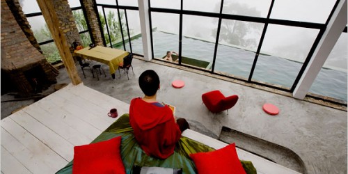 Là người nghiên cứu về đạo Phật, ngôi nhà do Nguyễn Quý Đức tự thiết kế này thấm đẫm chất thiền qua cách sử dụng vật liệu mộc mạc và giản dị: vách gỗ, những băng kính ngang đơn giản, tường đá và bê tông trần sần sùi. Một chiếc hồ đơn giản cũng được dựng ngay sát nhà, bên sườn núi. Thật là tuyệt vời khi được dầm mình trong nước và xung quanh là đại ngàn bao la tịch mịch.