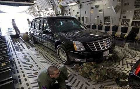 Khi lưu thông trên đường, chiếc xe của Tổng thống Mỹ được một đoàn xe lên tới 30 chiếc tháp tùng, gồm cả xe của cảnh sát địa phương, trung tâm thông tin di động và các xe vũ trang khác.