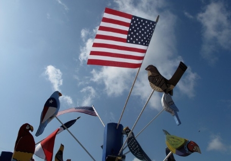 Lá cờ nước Mỹ và những chú chim bồ câu bằng giấy xuất hiện nhiều trong ngày Độc Lập nước Mỹ 4-7. |