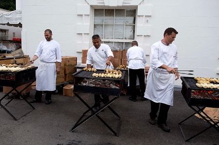 Các đầu bếp chuẩn bị nấu nướng tại nhà hàng của Nhà Trắng trong ngày 4-7.